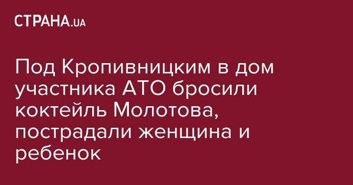 В Кировоградской области в дом участника АТО бросили бутылку с горючим веществом, в результате чего пострадали женщина с малолетним ребенком. Об этом сообщается на сайте ГУ НП в Кировоградской области.