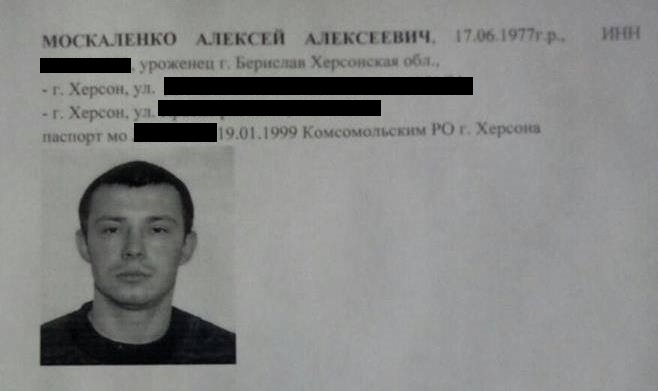 Алексей был неоднократно судим за убийства и грабежи вместе со своим отцом - Алексеем Москаленко. Их банду под названием "Москали" хорошо знает вся Херсонская область. В последнее время Москаленко-младший занимал должность помощника-консультанта депутата Херсонского областного совета от Радикальной партии Ляшко Николая Ставицкого.