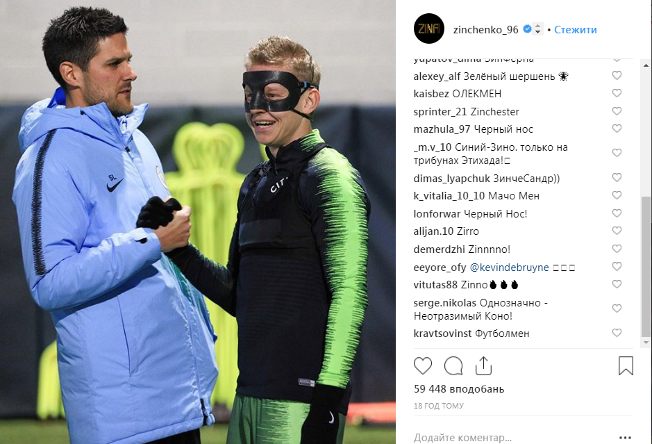Украинский защитник "МанСити" Зинченко объявил у себя в Instagram конкурс на самое креативное имя супергероя