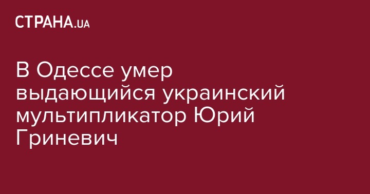 4 декабря умер украинский мультипликатор и режиссер, директор Одесской студии мультипликации, член правления Одесского отделения Национального союза кинематографистов Украины Юрий Гриневич. Об этом пишет "Думская".