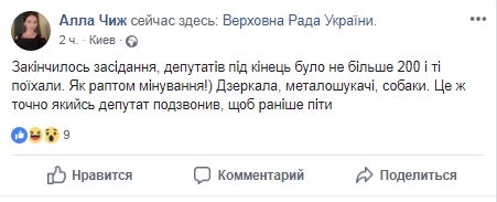 "Зеркала, металлоискатели, собаки. Это ж точно какой-то депутат позвонил, чтобы раньше уйти", - написала очевидица произошедшего на своей странице в соцсети.