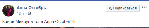 Дизайнер Анна Октябрь поделилась снимками Кайли на своей странице в Facebook. "Кайли Миноуг в топе Anna October", - сообщила она.