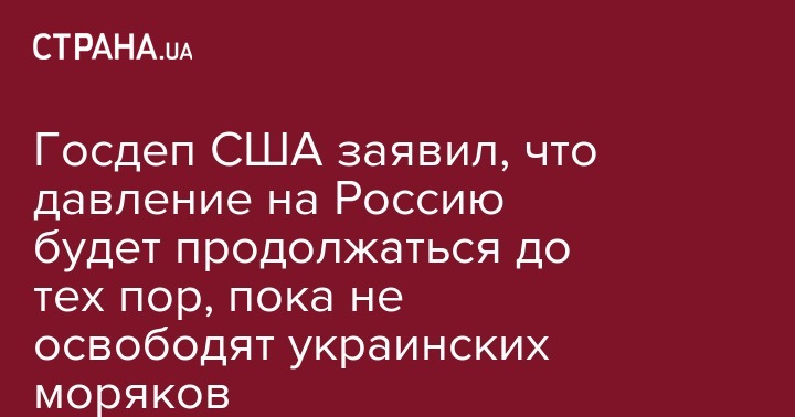 "Думаю, россияне получили это сообщение (относительно освобождения украинских кораблей и моряков - Прим.Ред.), но если они этого не сделают, то пусть знают, что пока они удерживают украинских моряков, мы продолжим повышать им цену. Мы хотим, чтобы россияне восприняли сообщение о том, что им нужно освободить экипаж, иначе будут последствия, и боль будет только сильнее со временем", - заявил представитель Госдепа.