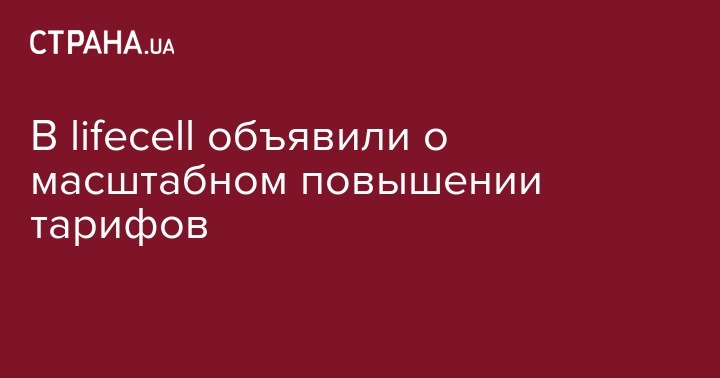 Третий по величине оператор мобильной связи в Украине - компания lifecell, серьезно повысит стоимость более половины существующих тарифов и переводит ряд абонентов на новые более высокие тарифы. Об этом сообщили в пресс-службе мобильного оператора, пишет Интерфакс-Украина.