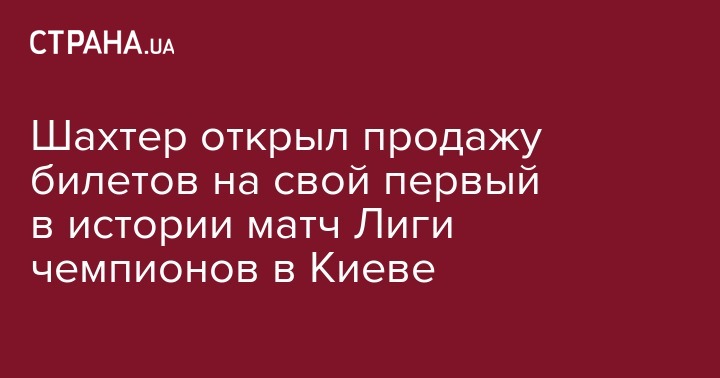 Шахтер открыл продажу билетов на свой первый в истории матч Лиги чемпионов в Киеве