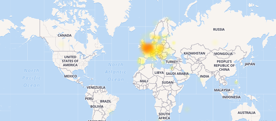 Он наблюдается в странах Европы. Больше всего проблема коснулась Великобритании, Франции, Нидерландов, а также Польши Германии. Неполадки ощутили на себе также жители Украины, России, Скандинавии.