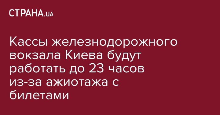 "Укрзализныця" увеличила сегодня продолжительность работы билетных касс вокзала станции Киев-Пассажирский до 23 часов. Об этом сообщается на сайте УЗ.