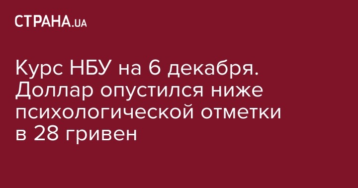 Курс НБУ на 6 декабря. Доллар опустился ниже психологической отметки в 28 гривен