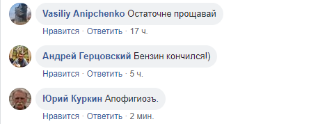 "Остаточне прощавай", "бензин кончился!)", "апофигиозъ", - пишут в сети.