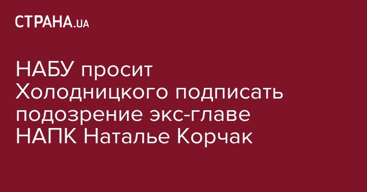 Национальное антикоррупционное бюро Украины (НАБУ) просит главу Специализированной антикоррупционной прокуратуры (САП) Назара Холодницкого согласовать подозрение бывшему главе агентства по противрдействию коррупции (НАПК) Наталье Корчак.