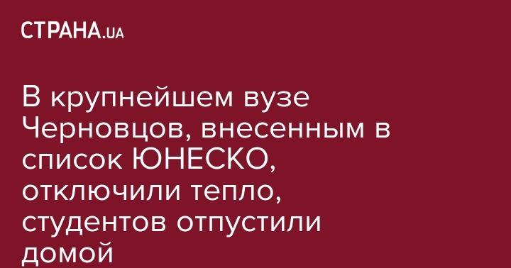 В крупнейшем вузе Черновцов, внесенным в список ЮНЕСКО, отключили тепло, студентов отпустили домой