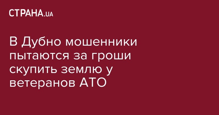 В районном центре Дубно (Ровенская область) активизировались скупщики земельных участков предназначенных для участников АТО. Они хотят выкупить право на землю за копейки мотивируя это тем, что бывшие военные не смогут заплатить налоги, которые требует государство.