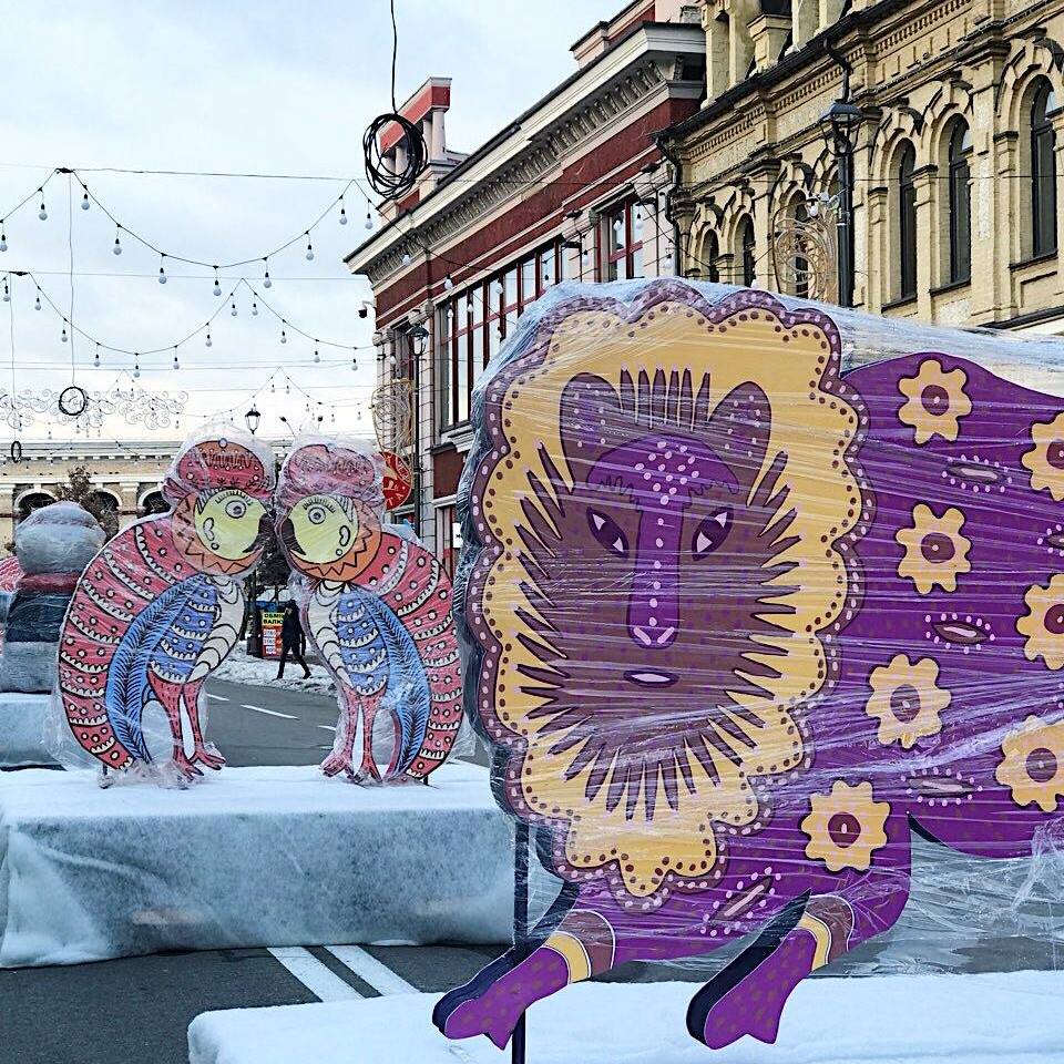 В Киеве на Контрактовой площади установили новогоднюю ель. Рядом с пушистой красавицей находятся удивительные звери Марии Приймаченко, которые станут символом праздника.