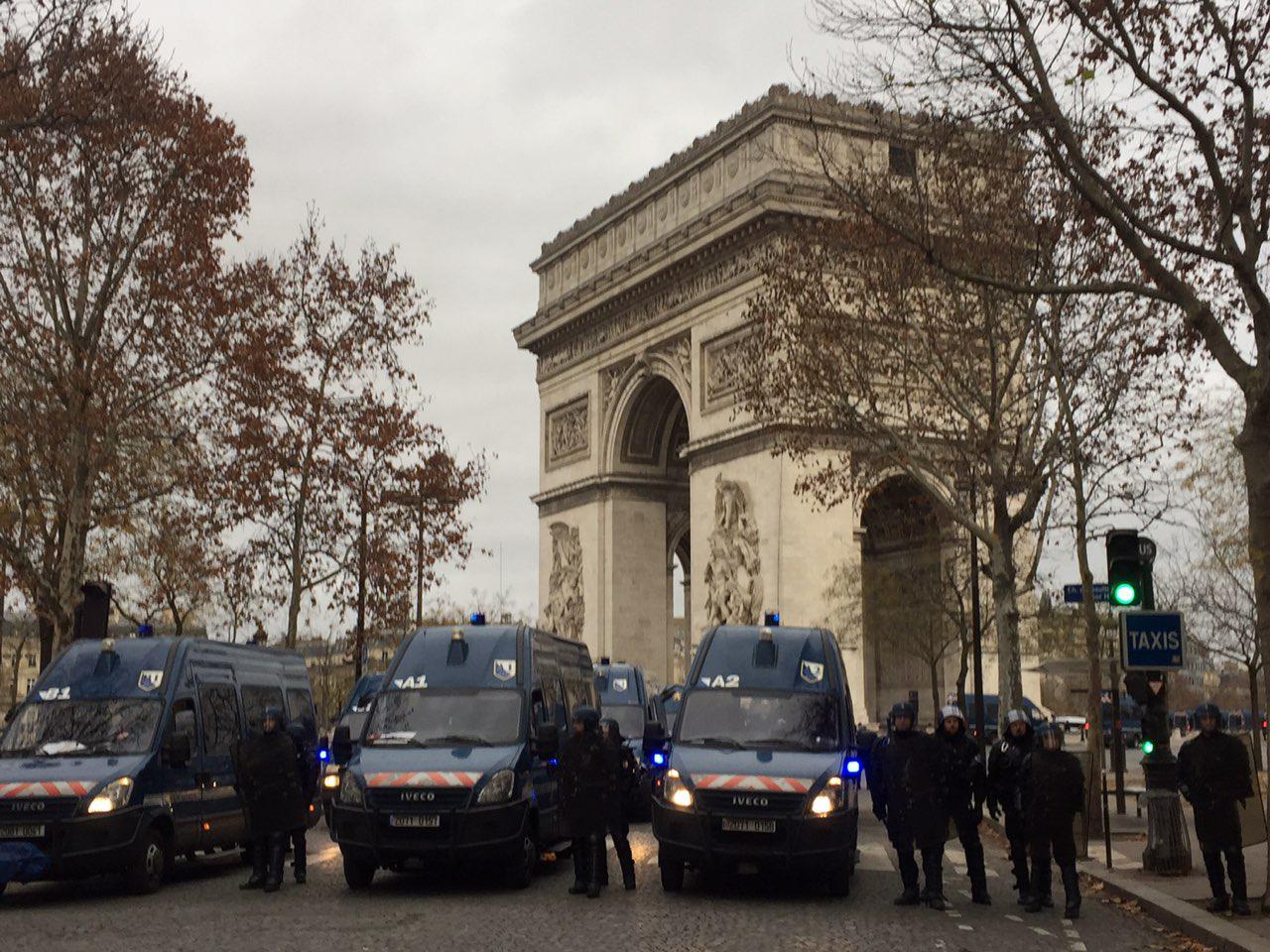 20.11 Протестующие продолжают барражировать вдоль Елисейских полей от Триумфальной арки до Елисейского дворца. Попытки прорвать оборону президентской резиденции по-прежнему безуспешны. Там крупные кордоны спецназа.