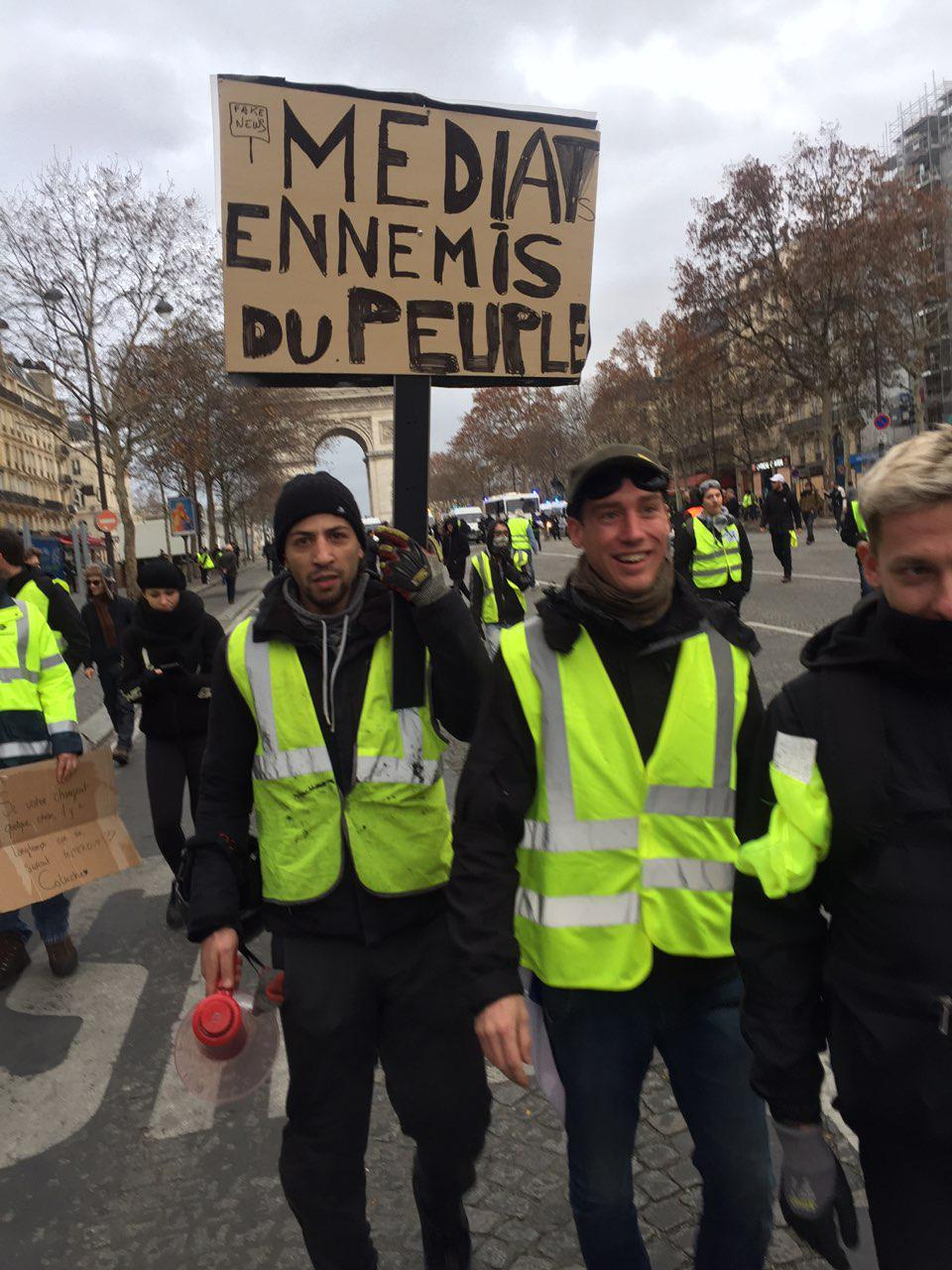 16.21 "Желтые жилеты" протестуют в Париже и против масс-медиа, большинство которых считают провластными и обвиняют во лжи.