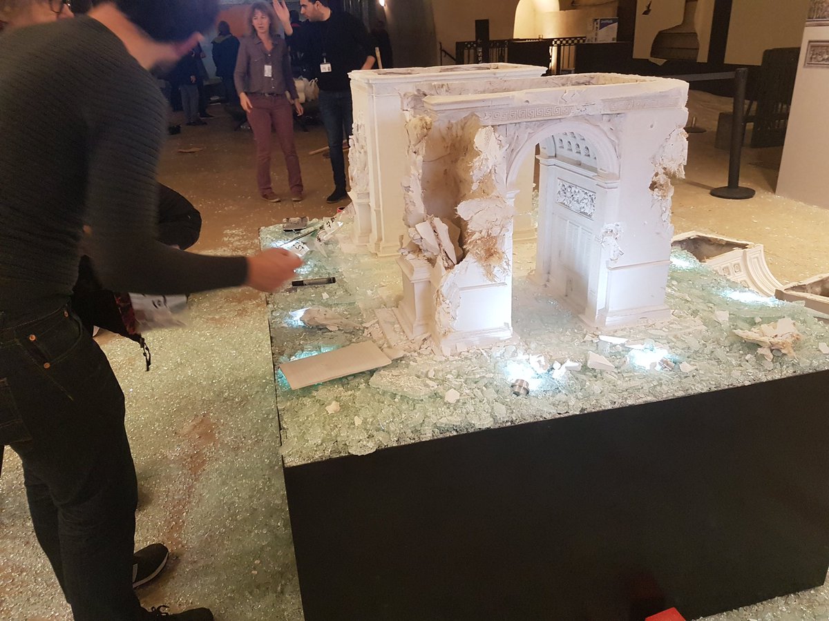 Кроме того, группе вандалов удалось проникнуть в музейные помещения Триумфальной арки. Там они "обезглавили" мраморную статую Наполеона, разбили гипсовую скульптуру тридцатых годов и изрисовали интерьеры.
