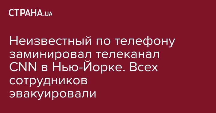 В Нью-Йорке произошло ЧП с редакцией телеканала CNN. Неизвестный позвонил в редакцию и сообщил о том, что в здании на Манхэтене заложено пять взрывных устройств. Всех сотрудников телеканала срочно эвауировали, причем один из ведущих телеканала Дон Лемон успел сообщить об этом в прямом эфире.