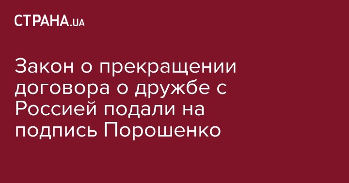 Закон о прекращении договора о дружбе с Россией подали на подпись Порошенко