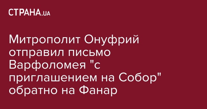 Предстоятель Украинской православной церкви (МП) митрополит Онуфрий отправил письмо с приглашением на "объединительный Собор" обратно главе Константинопольского патриархата Варфоломею. Он запечатал послание в конверт и оставил его без ответа, отправив письмо обратно на Фанар, стамбульский квартал, где находится нынешняя резиденция Варфоломея.