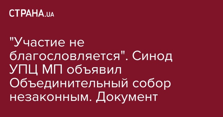 Объединительный собор, запланированный на 15 декабря, считается, таким образом, незаконным собранием: в нем будут участвовать "представители раскольнических группировок". Также Синод выразил обеспокоенность "многочисленными случаями давления на Преосвященных УПЦ с целью заставить их принять участие в Соборе". Кроме того, в документе речь идет о том, что Собор УПЦ может созываться только предстоятелем УПЦ Онуфрием, он таких решений не принимал, поэтому "УПЦ будет считать любые решение так называемого объединительного собора недействительными и такими, которые не будут иметь юридической и канонической силы".