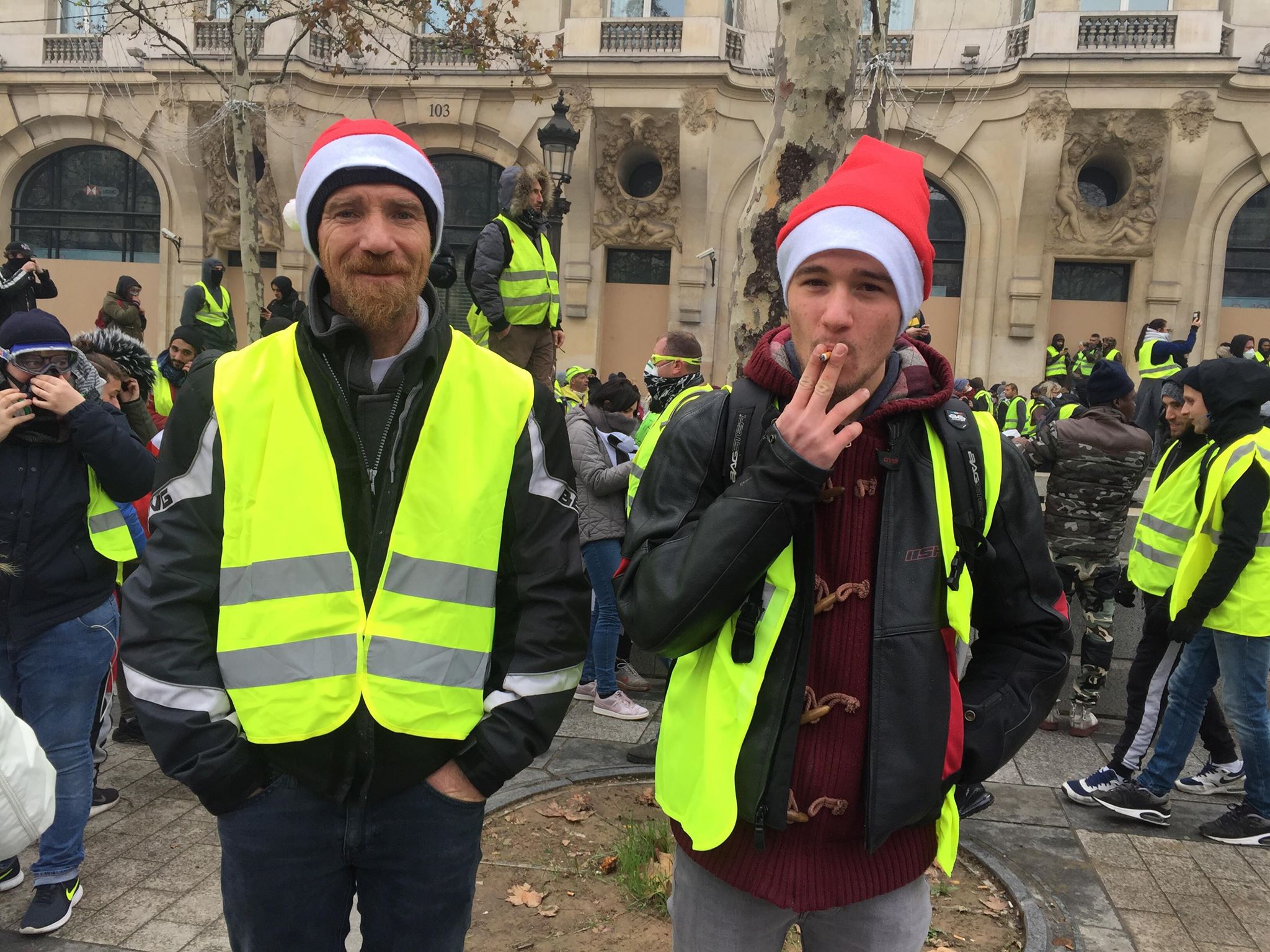 Полиция отгоняла участников "Желтых жилетов"  подальше от Триумфальной арки. Теперь воздух на Елисейских полях наполнен жуткой смесью травки и слезоточивого газа. Многие из активистов не скрываясь открыто курят марихуану.
