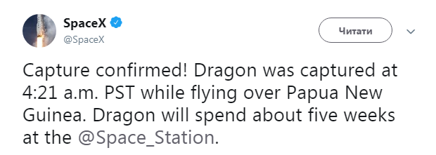 Об этом сообщила пресс-служба компании SpaceX в своем твиттере. Трудности при стыковке возникли из-за проблем со связью.