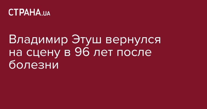 96-летний народный артист СССР Владимир Этуш, сегодня, 8 декабря, после болезни вернулся на сцену. Об этом сообщила пресс-атташе Вахтанговского театра Елена Кузьмина, передает ТАСС.