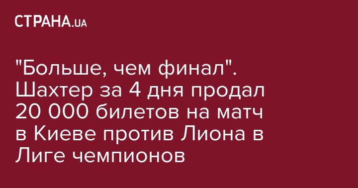 "Больше, чем финал". Шахтер за 4 дня продал 20 000 билетов на матч в Киеве против Лиона в Лиге чемпионов