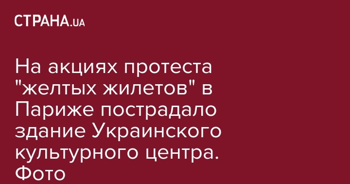 Во время протестных выступлений "желтых жилетов" в Париже, в которых в минувшую субботу приняли участие 125 000 человек пострадал и Украинский культурно-информационный центр при посольстве во Франции, расположенный на авеню де Мессин. Неизвестные повредили табличку с названием центра возле входа в здание.