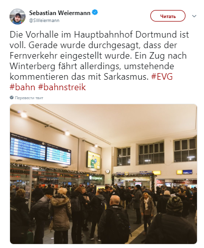 Межрегиональные перевозки были отменены по всей стране из-за четырехчасовой забастовки, которая началась в 05:00 10 декабря, сообщил немецкий железнодорожный оператор Deutsche Bahn.