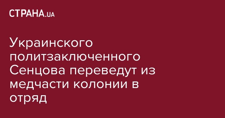 Украинского политзаключенного Сенцова переведут из медчасти колонии в отряд