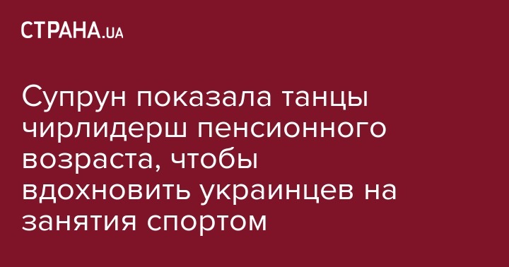 И.о. главы Минздрава Ульяна Супрун посоветовала украинцам не искать отговорки, чтобы не заниматься спортом, а посмотреть видео о необычной команде чирлидерш из Харькова "Nice Ladies", средний возраст участниц которой составляет 65 лет. Об этом Супрун написала на своей странице в Facebook.