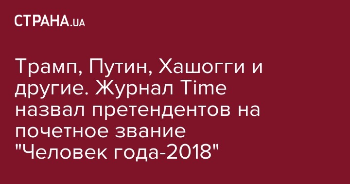 Трамп, Путин, Хашогги и другие. Журнал Time назвал претендентов на почетное звание "Человек года-2018"