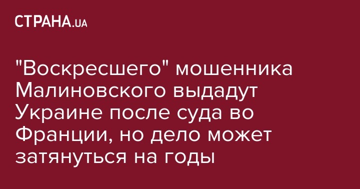 "Воскресшего" мошенника Малиновского выдадут Украине после суда во Франции, но дело может затянуться на годы