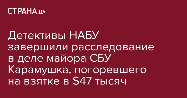 НАБУ завершило расследование в "паспортной истории" майора Александра Карамушки, который попался на взятках в размере $47,5 тысяч от иностранцев, которые незаконным образом получили украинское гражданство. Об этом сообщается на сайте НАБУ.