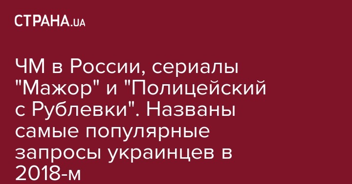 В 2018 году украинцев в Интернете больше всего интересовал Чемпионат мира по футболу в России. Следом по числу запросов расположились третий сезон сериала "Мажор" и песенный конкурс "Евровидение-2018".