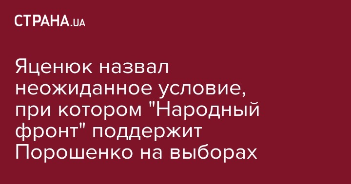 "Народный фронт не исключает возможности поддержки исключительно члена партии "Народный фронт". Если Петр Порошенко станет членом политической партии "Народный фронт" – мы подумаем об этом", – сказал бывший премьер.