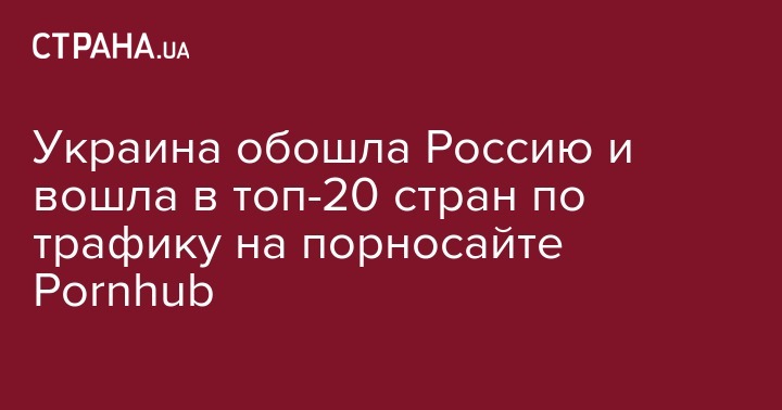 "Новым участником топ-20 Pornhub является Украина, которая с 2017-го поднялась на 11 мест и теперь занимает 16 место. Швеция, Аргентина, Россия и Южная Африка остались в топ-20", - говорится в статистике.