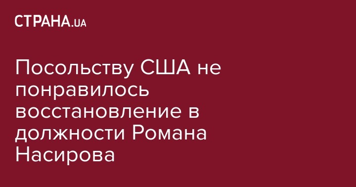 В посольстве США назвали решение суда о восстановлении Романа Насирова в должности главы Государственной фискальной службы "показателем несовершенства судебной и антикоррупционной реформ в Украине". Об этом говорится в сообщении посольства в Twitter.