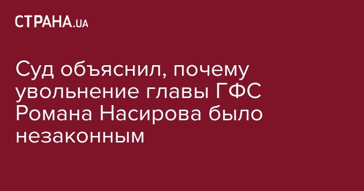Кроме того, основанием удовлетворения иска послужило прямое нарушение порядка принятия решение об увольнении главы ГФС, которое, согласно норм действующего законодательства, может иметь место исключительно на основании решения Кабмина, которому должно предшествовать внесение премьер-министром соответствующего представления. Вместе с тем, при рассмотрении дела судом было установлено, что премьер представления об увольнении Насирова на рассмотрение правительства не вносил, что подтверждает несоответствие обжалуемого решения требованиям указанной выше статьи 2 КАС Украины и в очередной раз свидетельствует о противоправности обжалуемого решения.