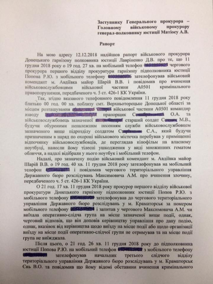 Матиос отметил, что оперативно-следственная группа территориального управления Государственного бюро расследований (ГБР) в Краматорске выехала на место происшествия не сразу. Сначала начальник третьего следственного отдела территориального управления по фамилии Ень сообщил, что "в связи с тем, что обстановка на месте происшествия уже нарушена, следов преступления уже наверное нет, а также темное время суток, оснований для выезда нет, и осмотр места события запланирован на утро 12 декабря". А утром стало известно, что следственная группа вообще не намеревалась выезжать.