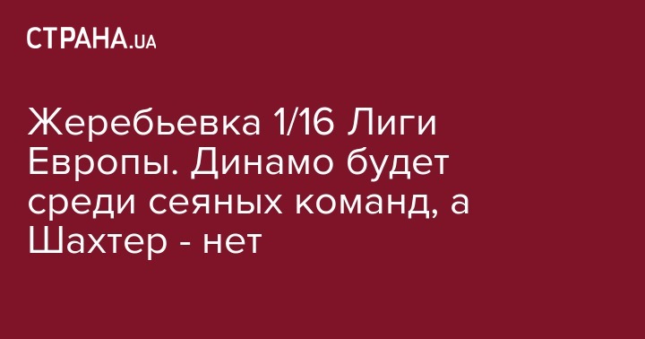 Жеребьевка 1/16 Лиги Европы. Динамо будет среди сеяных команд, а Шахтер - нет