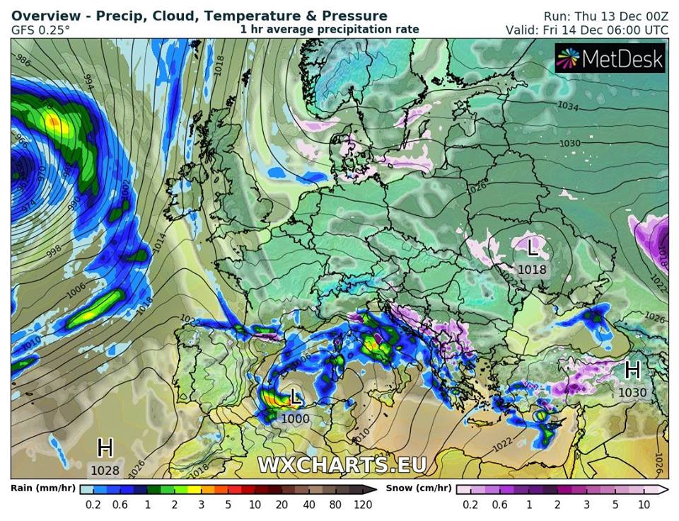Уже в пятницу, 14 декабря, циклон ослабнет, но по-прежнему будет царствовать в Киеве. По словам Диденко, также в пятницу снег и мокрый снег ожидаются в северных регионах, на Западе, в Винницкой, Черкасской областях и районах Кропивницкого. В южной части Украины - лишь местами небольшие осадки.На Востоке Украины снега или дождя завтра не будет. Температура воздуха будет держаться на уровне нуля, с небольшими колебаниями.