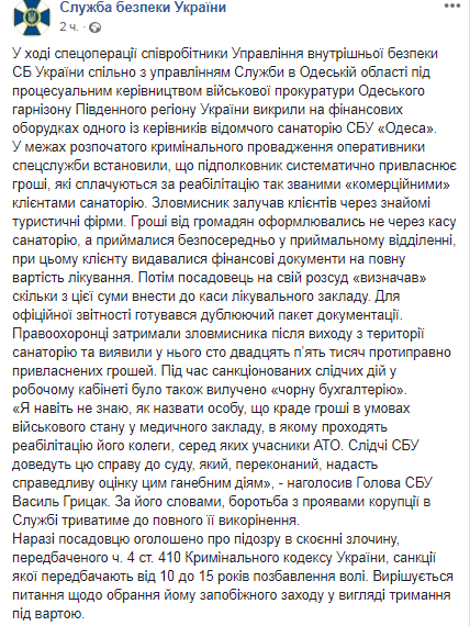 Двум задержанным организаторам объявлено о подозрении по ч.1. ст.263 Уголовного кодекса Украины (незаконное обращение с оружием, боевыми припасами или взрывчатыми веществами) и избрана мера пресечения в виде содержания под стражей.