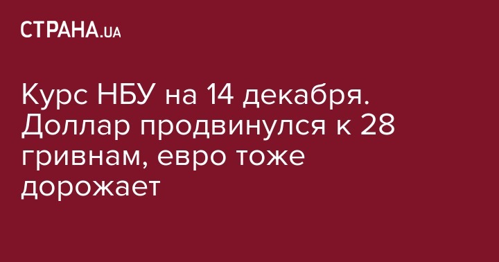 Курс НБУ на 14 декабря. Доллар продвинулся к 28 гривнам, евро тоже дорожает