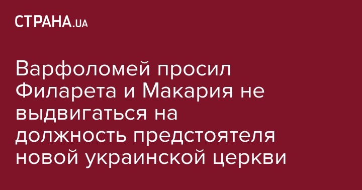 Варфоломей просил Филарета и Макария не выдвигаться на должность предстоятеля новой украинской церкви