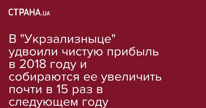 В "Укрзализныце" удвоили чистую прибыль в 2018 году и собираются ее увеличить почти в 15 раз в следующем году