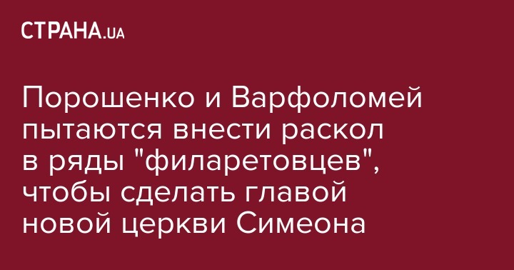 Порошенко и Варфоломей пытаются внести раскол в ряды "филаретовцев", чтобы сделать главой новой церкви Симеона