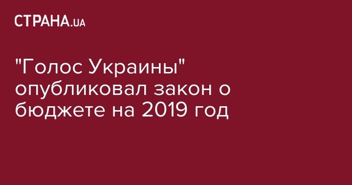 "Голос Украины" опубликовал закон о бюджете на 2019 год