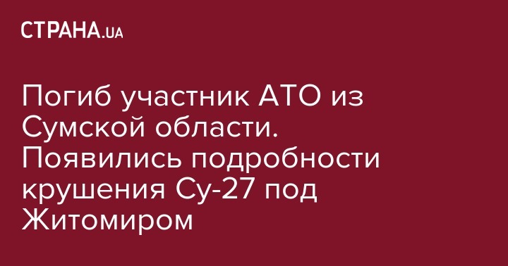 Во время крушения многоцелевого истребителя Су-27 под Житомиром погиб военный летчик первого класса, майор Александр Фоменко, сообщили в пресс-службе Командования воздушных сил ВСУ.
